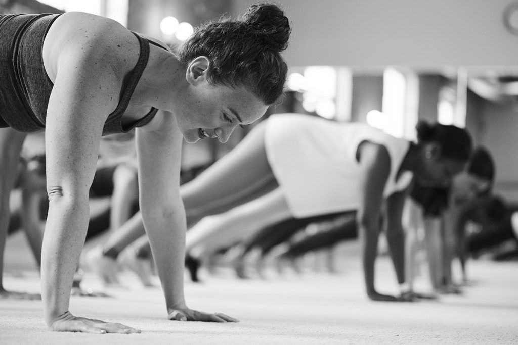 Yes! Strength training is a key element in each Bar Method class. The workout includes upper-body exercises and push-ups, seat and thigh work at the barre, and core exercises on the floor. You’ll primarily use your own body weight for resistance, though your instructor may tell you when to add props like free weights for added challenge.